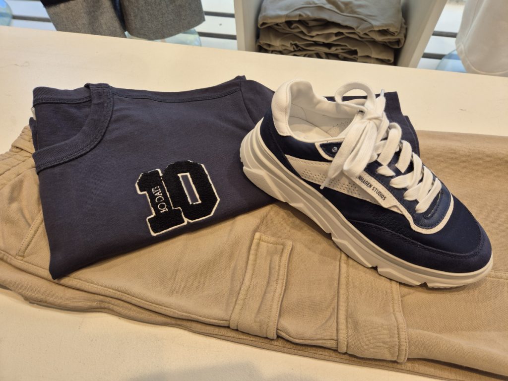 Andere set is helemaal van Penn & Ink met sneakers van Copenhagen Studio.