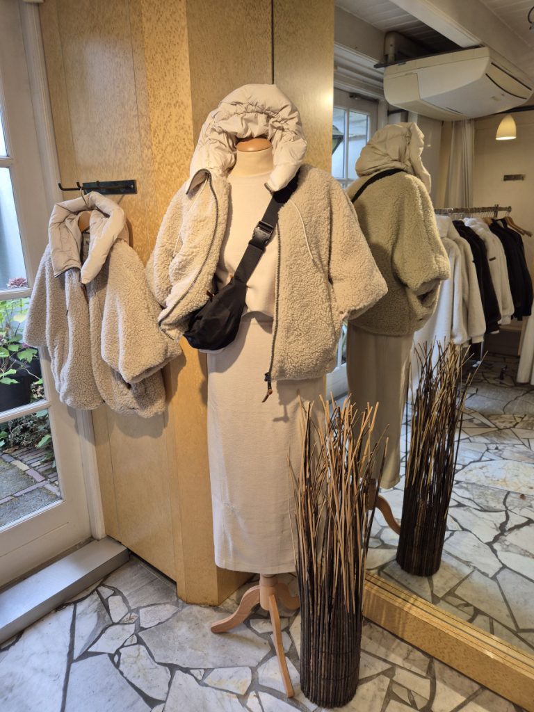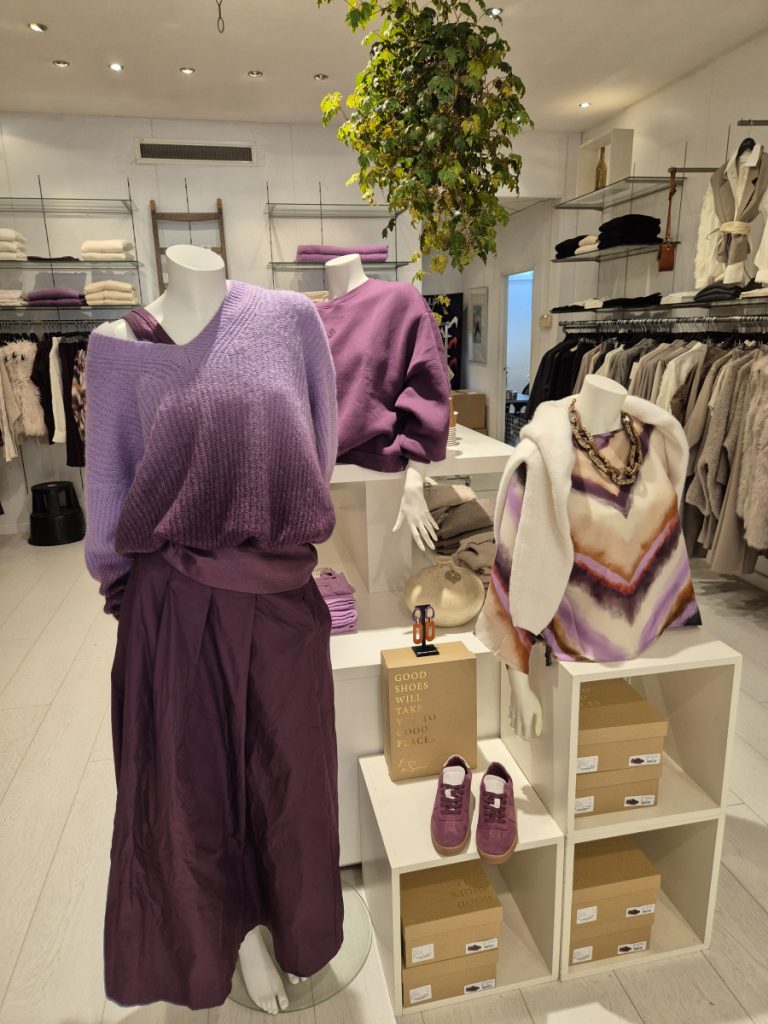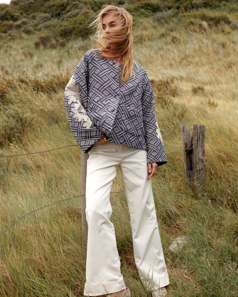 Jasje en sweater van Aimée the Label, pantalon van Summum.